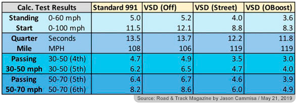 Road & Track magazine says “In Street mode, it averages a 36 percent increase in torque from just off idle to redline, magically and silently turning the 3.4-liter into a virtual 4.6-liter. And in Overboost, it averages a 48-percent boost in torque, faithfully replicating what a 5.0-liter version of this flat-six might feel like.” Read the full Road & Track article here…